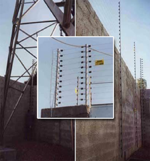 Mesmo com a utilização de construções muradas é possível integrar as soluções SPEEDRITE obtendo uma proteção completa do perímetro. Isto é viabilizado, implantando-se uma cerca paralela ao muro, até o nível do solo, que proporciona uma proteção total, tornando-se um elemento surpresa para um eventual intruso, visto do lado externo do perímetro protegido pela cerca.